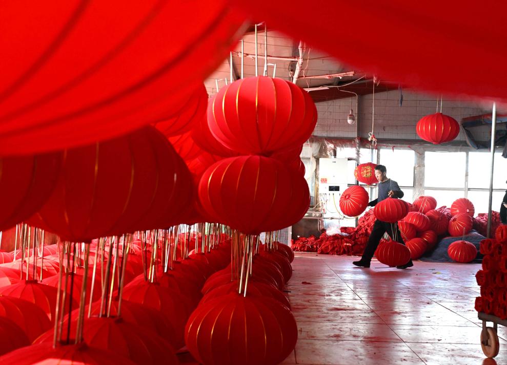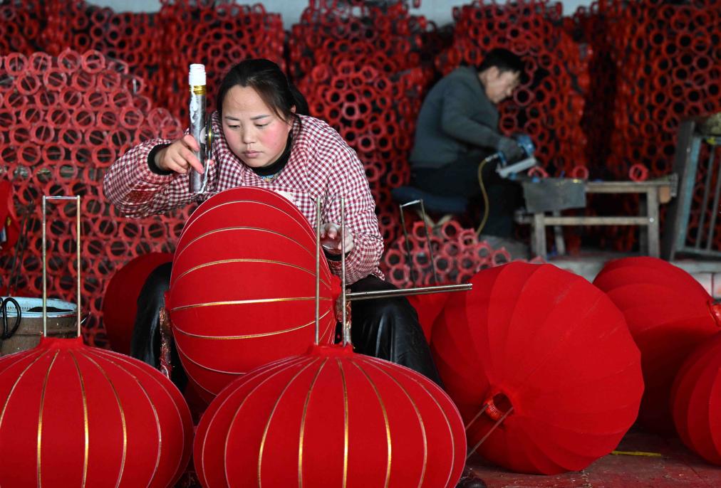 岁末年初,河北省石家庄市藁城区屯头村内一派繁忙景象,当地村民赶制藁城宫灯,供应春节市场。藁城宫灯是河北省级非物质文化遗产,目前已有18个系列300多个品种,产品远销全国各地。