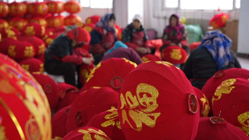 马年春节将近,在甘肃省平凉市庄浪县的宫灯产业园,生产企业正加班加点赶制宫灯。