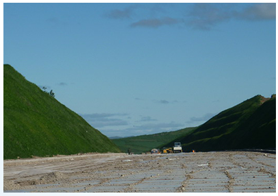 根据当地的气温,降雨量,坡比、岩石裂隙,岩石硬度,植物的选择,以立地条件的不同来决定采用“金属网铺设工程+植被基材喷附工程”以增大生长发育基础与坡体的连接性。选择适合的草种配合比,改善绿色植物的生长发育环境和促进目标树种生长的双重功能,以确保喷射效果和质量。客土喷播材料中包括植物种子、有机营养土、土壤改良剂、稳定剂、微生物菌剂、肥料等。客土喷播采用12m3空压机和喷射机以及搅拌机等。