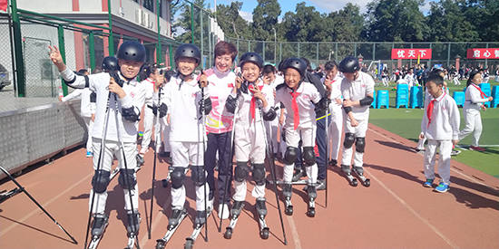 除了在雪场教学,她走进校园,给孩子们讲述冰雪运动的故事。虽然一开始免不了吃“闭门羹”,但现在已有不少学校抢着邀请她去宣讲。当然,其中的难处不言而喻。